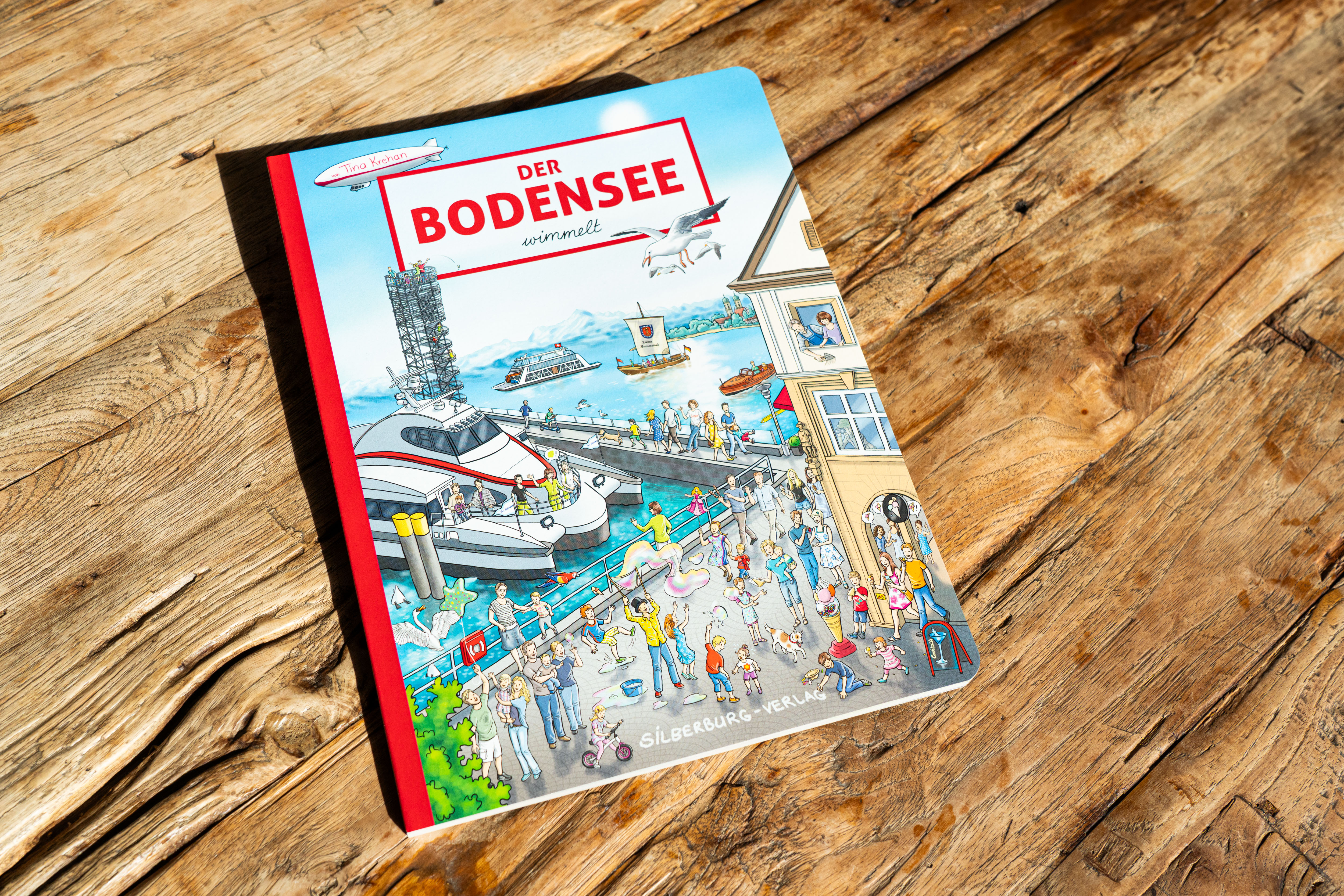 Wimmelspaß rund um den Bodensee für die ganze Familie. Groß und Klein wetteifern, auf den liebevoll gezeichneten Bildern die meisten Gegenstände und Orte zu erkennen - und sehen dabei ihre Heimat oder den Urlaubsort mit ganz neuen Augen. Kloster Birnau, die Pfahlbauten in Unteruhldingen, Friedrichshafen und der Zeppelin - der Bodensee bietet so viele Attraktionen, dass die Auswahl schwer fällt. Umso schöner, dass das große Format der Zeichnerin viel Platz zur freien Entfaltung gelassen hat!