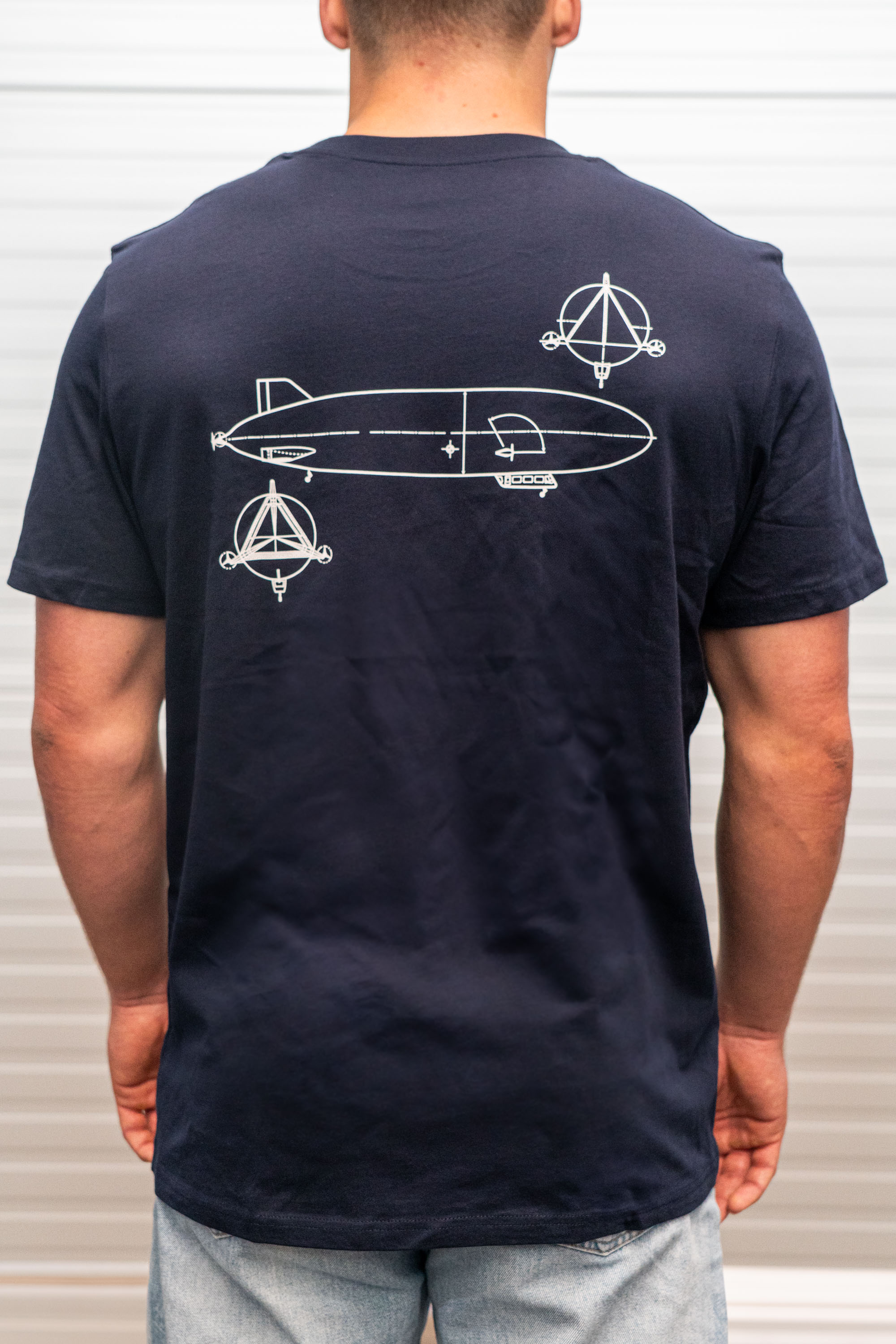 · Original Zeppelin-Design – technische Zeichnung auf dem Rücken, Shape-Motiv auf der Brust
