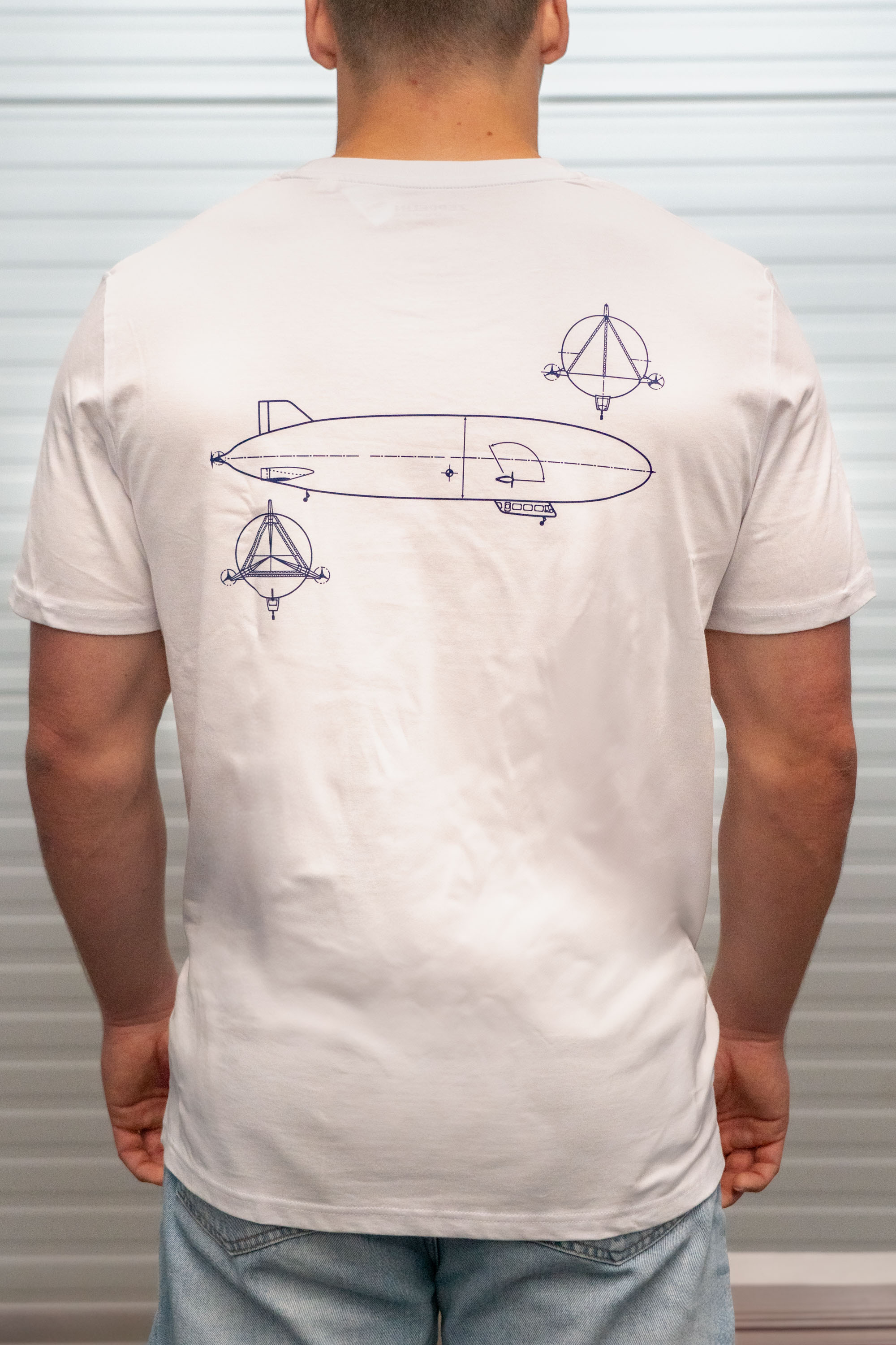 · Original Zeppelin-Design – technische Zeichnung auf dem Rücken, Shape-Motiv auf der Brust